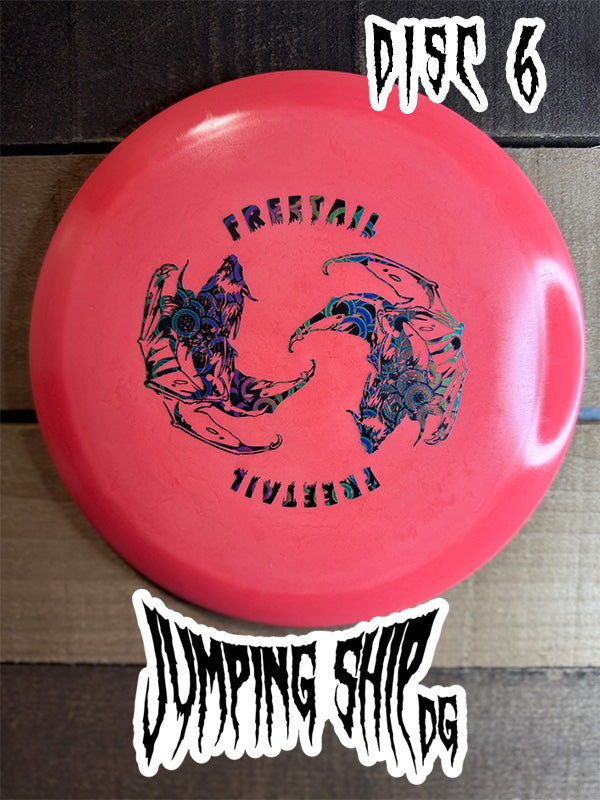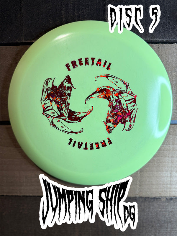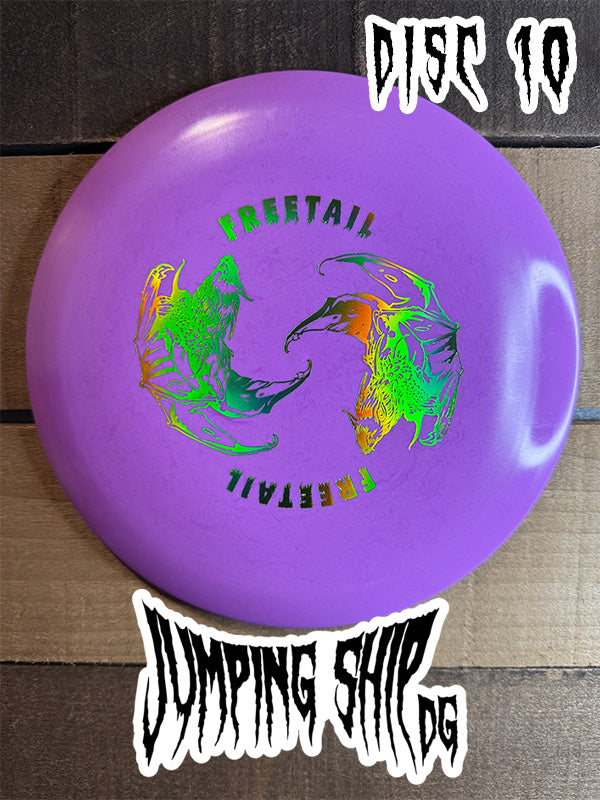 About the Freetail: This understable distance driver is named after the Mexican Free-tailed Bat that is native to our home city of Austin, Texas. The Freetail is a driver that wants you to control it, not power it like the Alpha. Give it an easy flat spin for the best turnover your life, or if you have a bit more power make sure to put a little hyzer on it for a buttery flip up line.