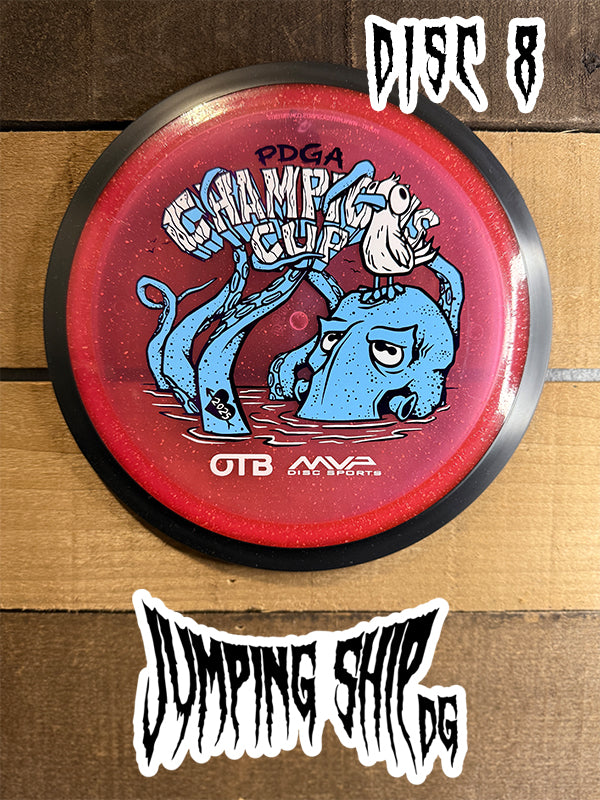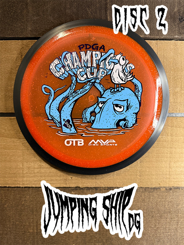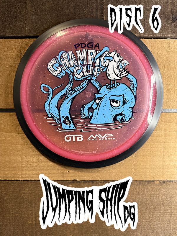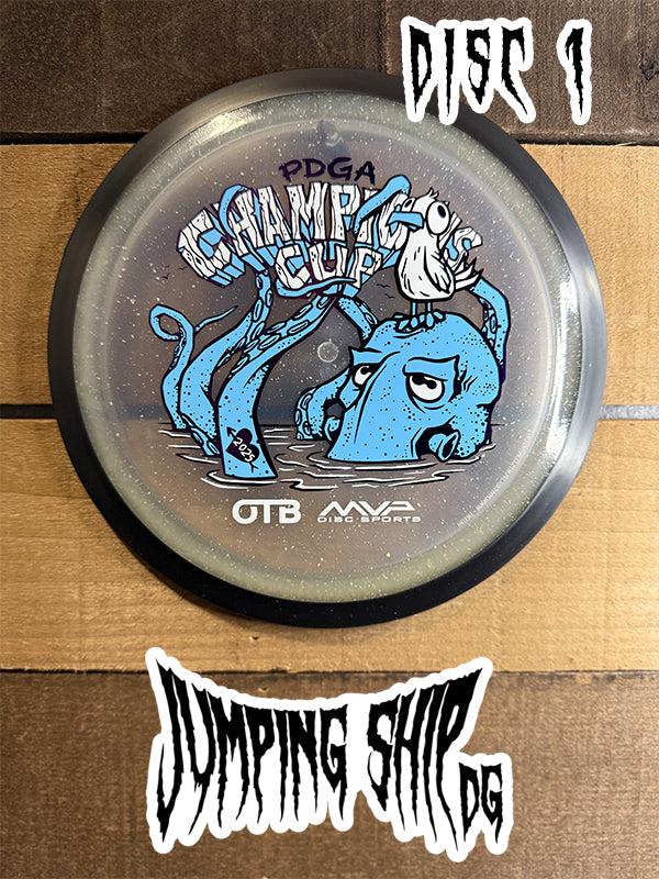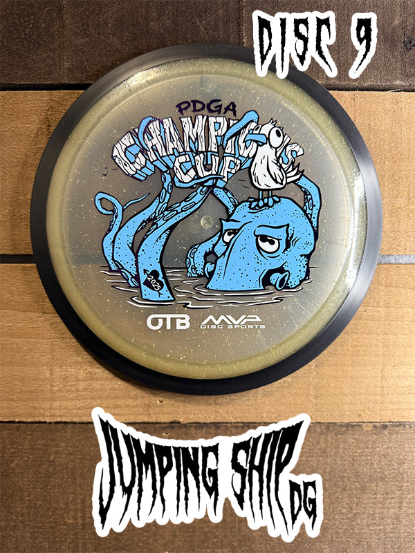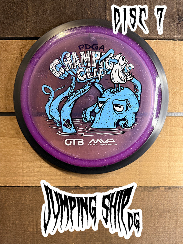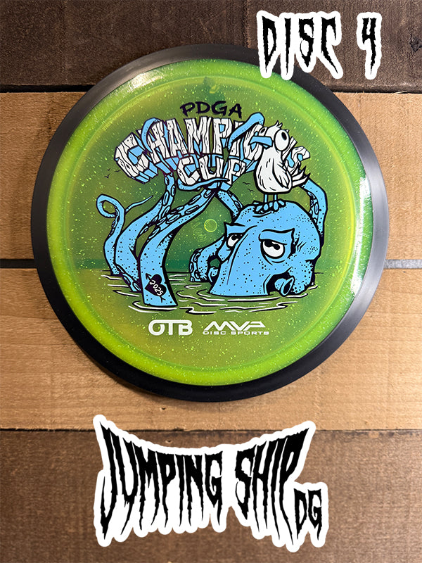 Here we have “Frank”, courtesy of Green C Studio, on the Particle Glow Proton Wave! Blending seamlessly into the plastic, Frank adorns this neutral to understable distance driver ready to be a lower-power bomber, hyzerflip machine, or even a roller disc. Now available in our Particle Glow Proton, you can light up the fairway in style – just like Frank.